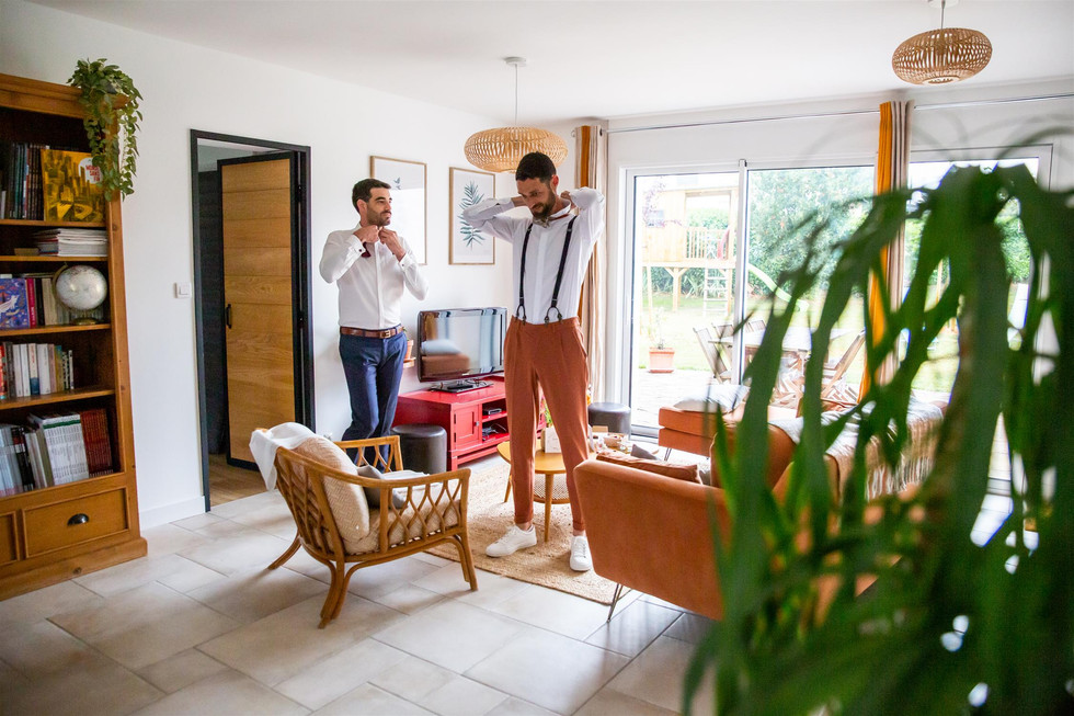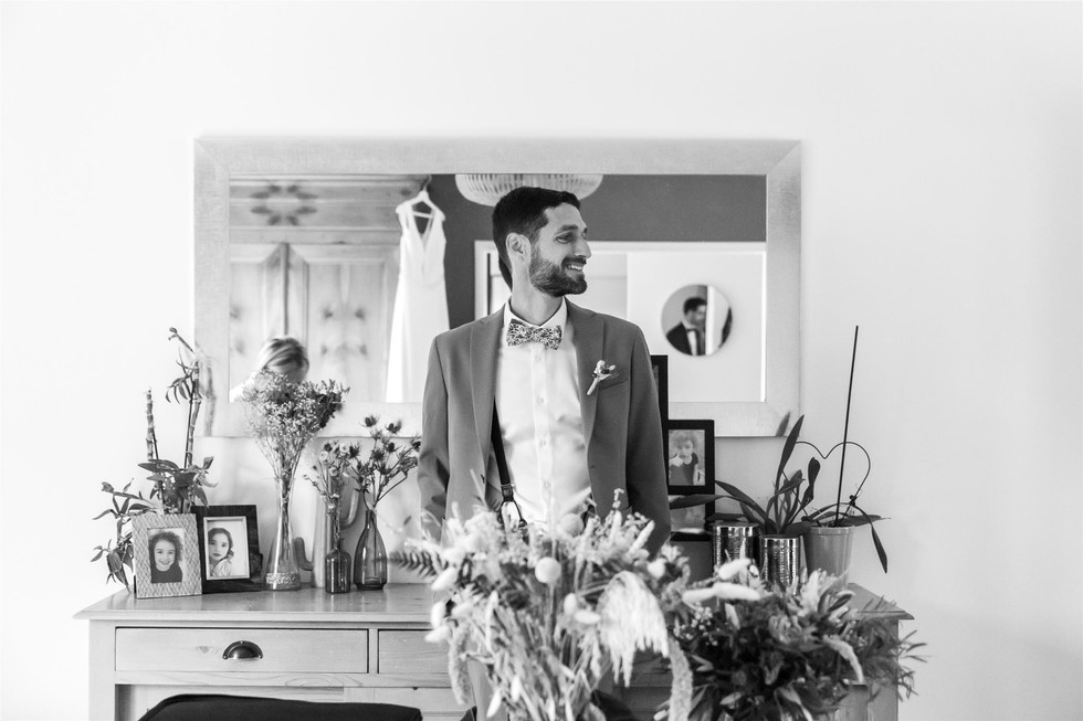 Avec : - Lieu de réception : Le préambule à Ligné - Coiffure : Pauline Fonseca – Juste à la pointe – Ligné - Bijoux de la mariée : Ana & Cha - Alliances : Histoire d’or - Robe : Les mariées de Nantes – Marque Bianco – Mondèle Azaria - Peigne fleurs séchées : Modèle DINAN de l’Atelier de Florine - Costume : Devred - Noeud papillon – Colonel Moutarde