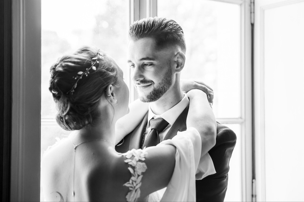 Coiffure : Atelier 5 à Nantes Bijou de dos : Hera Mariage / Bijou de tête : Eglantine Mariage et cérémonie. Robe de mariée : Mariées de Nantes Costume : Coup de ciseaux à Nantes Fleuriste : Les jolies choses à Couëron